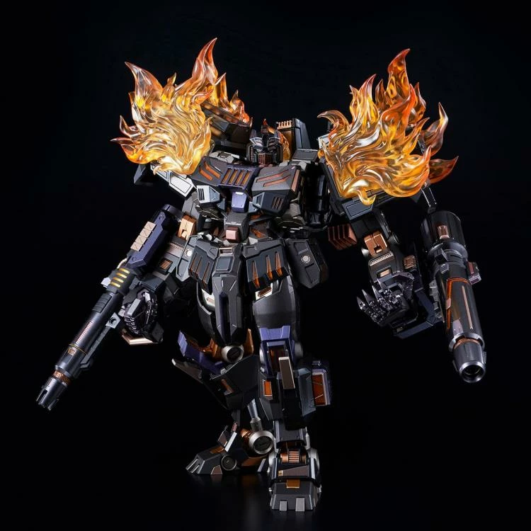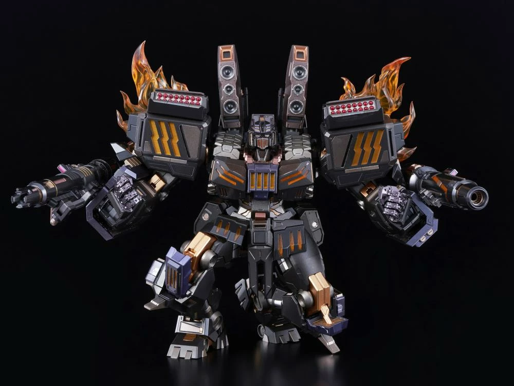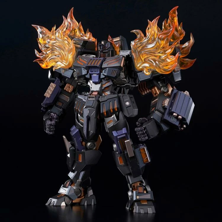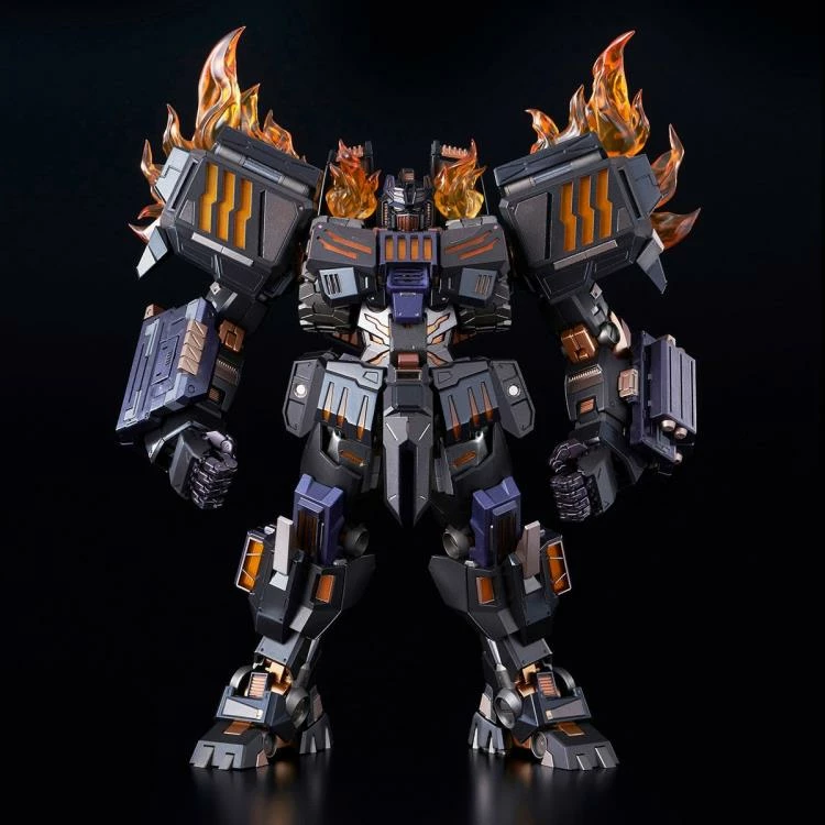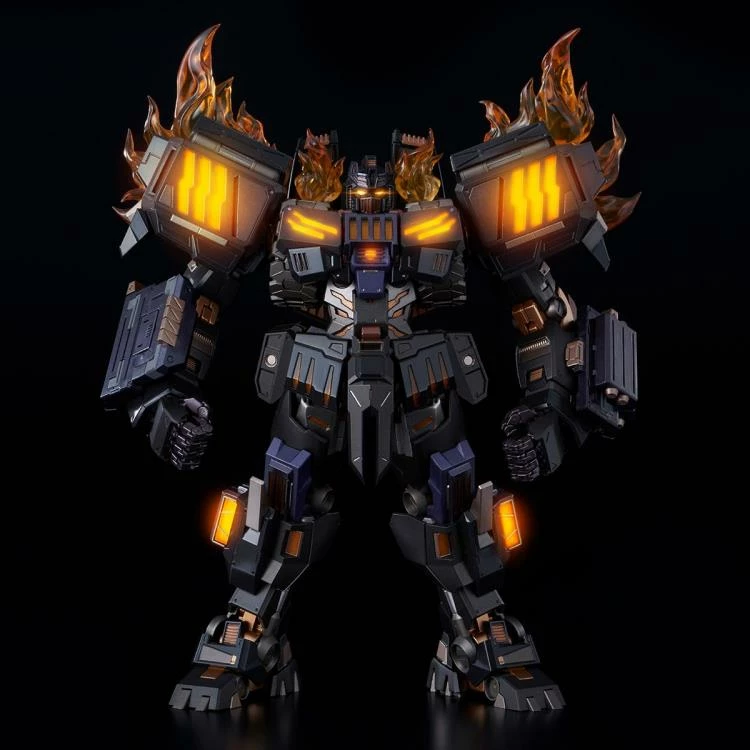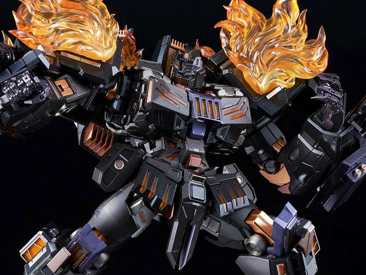 First known as Megatronus Prime, The Fallenย joins theย Kuro Kara Kuriย line up! This figure of the first Decepticon stands around 8 inches tall and is made of iron, PVC, and features LED light-up units in the eyes, chest, shoulders, and legs. This set also includes 2 kinds of cannons that can combine to become his signature Mega Cannon.