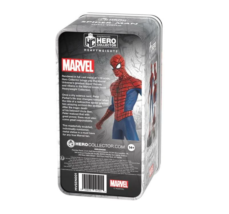 This detailed 1:18 figurine depicts Spider-Man standing tall in full cast metal. Meticulously hand-painted, the model draws out all the details of the classic Spider-Man costume.