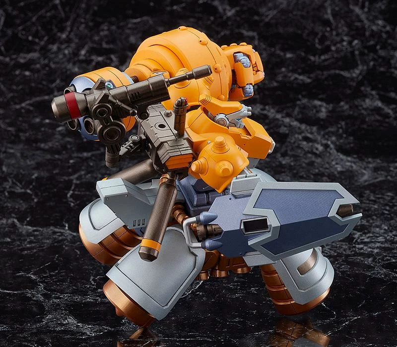The plastic model kit was created in collaboration with Sentinel, the creators of RIOBOT B-Riot! The plastic model features articulated joints, a shield gun, a back-mounted Vulcan cannon, and interchangeable hand parts.