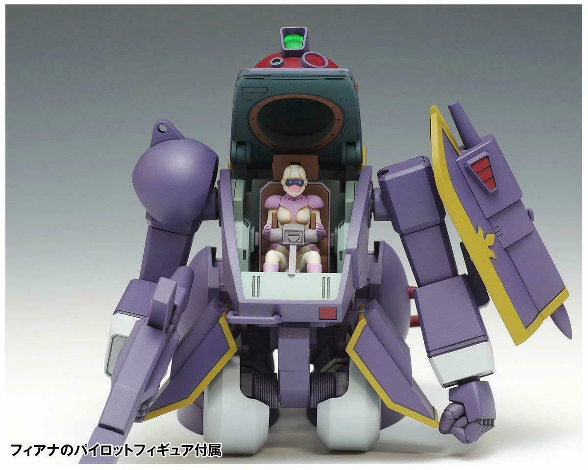 This snapfit kit of the Berserga DT from “Armored Trooper Votoms” will be about 12 cm tall when assembled; no glue is required, and since it’s molded in color, painting is not necessary (although just about any model kit looks better with some paintwork). It will be poseable after assembly, features a seated Fiana pilot figure, and comes with stickers for the markings.ย ย