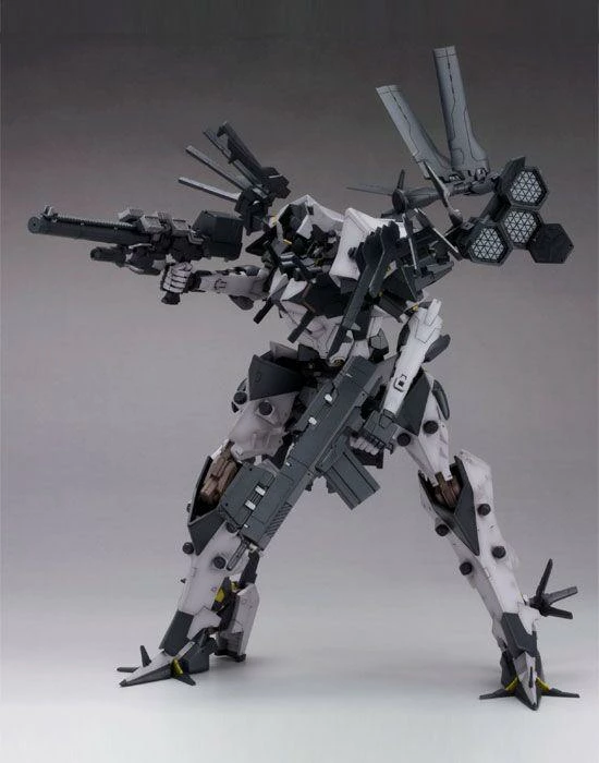 The latest Armored Core fine scale model kit is a powerful medium to long-range combat unit first seen in Armored Core For Answer and built after the Lynx War, BFF 063AN AMBIENT!ย Vastly improved over the older 047AN unit, the Ambient is a wicked looking robot covered in angular armor plates and wielding large weapons.