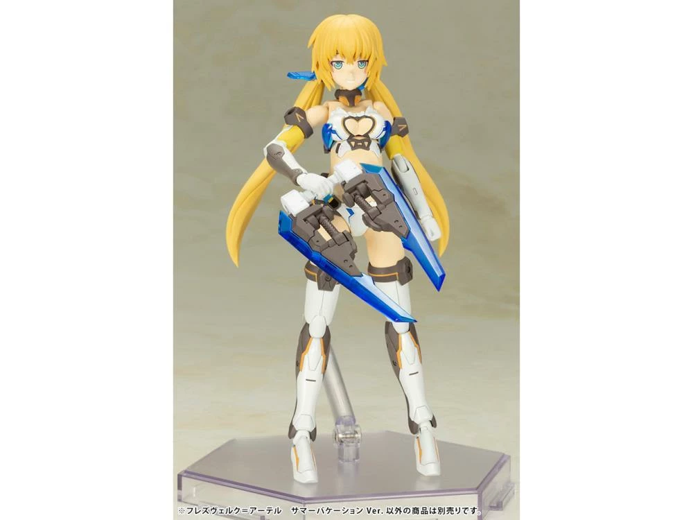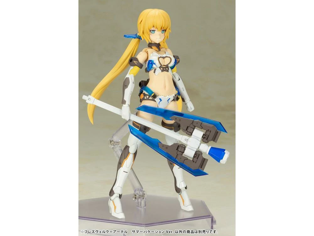 The latest addition to the line is a summer vacation version of Hresvelgr=Ater. Based on Tomotake Kinoshitaโs mech design and E-ji Komatsuโs character design, Hresvelgr=Ater boasts vast improvements from the original Stylet modelโs poseability and customizability.