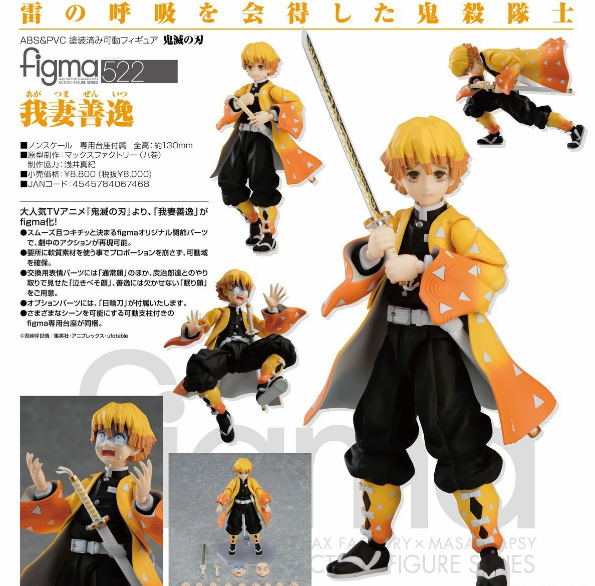 From the popular anime series “Demon Slayer: Kimetsu no Yaiba” comes a figma of Zenitsu Agatsuma!