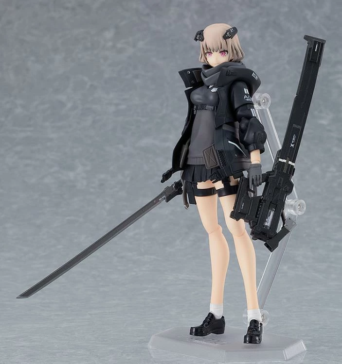 The smooth yet poseable joints of figma figures allow her to be posed on her included articulated stand. She comes with her sword and handgun scabbard that can be transformed into a double-barrel rifle.