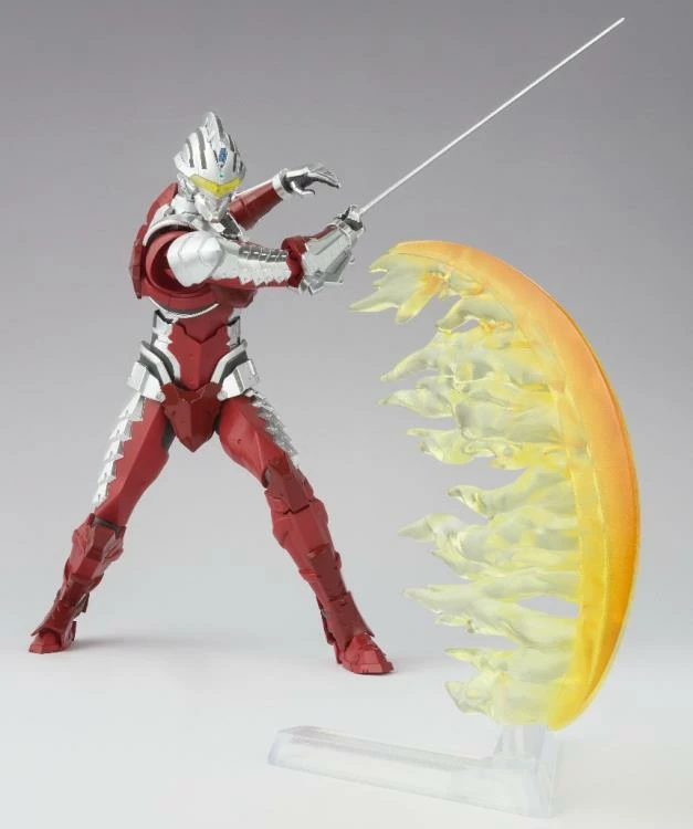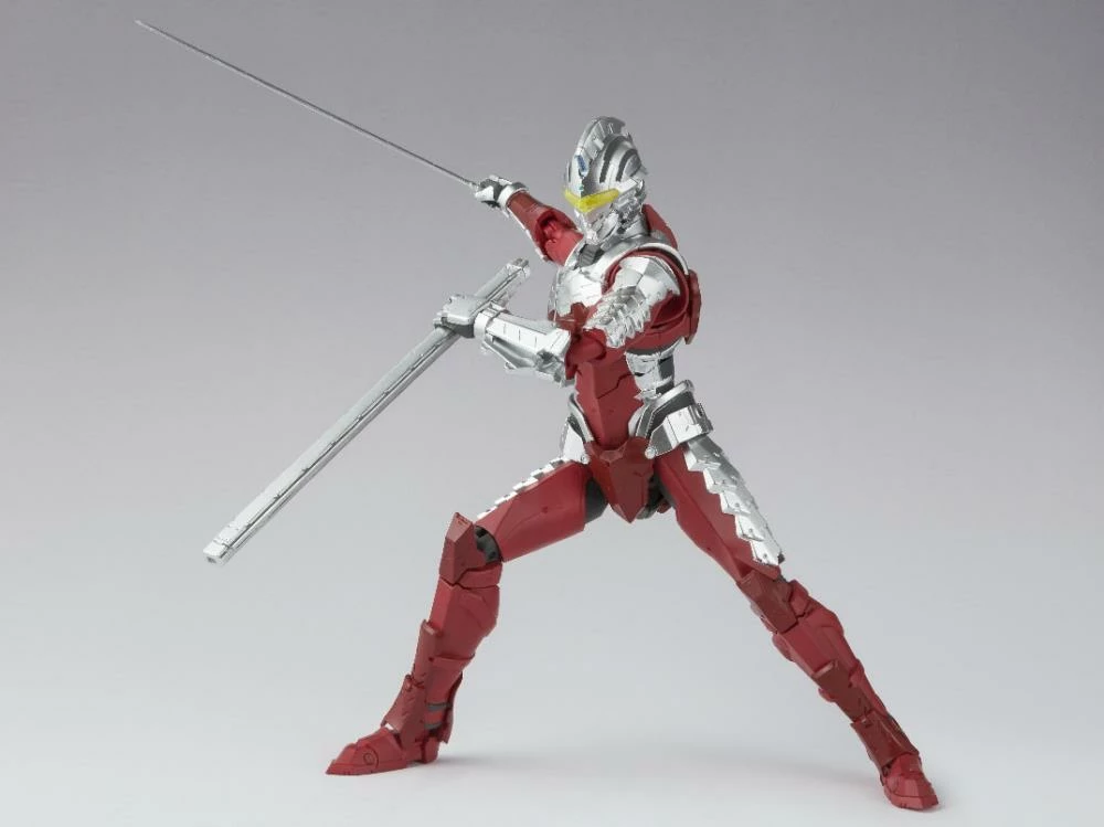 The star of the new Netflix-produced animated show Ultraman Suit Ver. 7 joins S.H.Figuarts line up! Designed along with the animation, it features accurate proportions and a full range of motion to capture all of his dynamic poses. The set includes the figure, four optional left hands, two optional right hands, an Eye Slugger, an a Specium Sword and its sheath, and a slashing effect part.